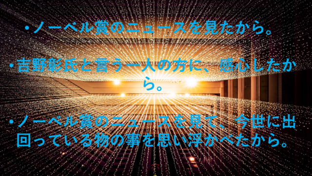 ここまで本文で、2019年のノーベル賞発表の事をお伝えして参りました。