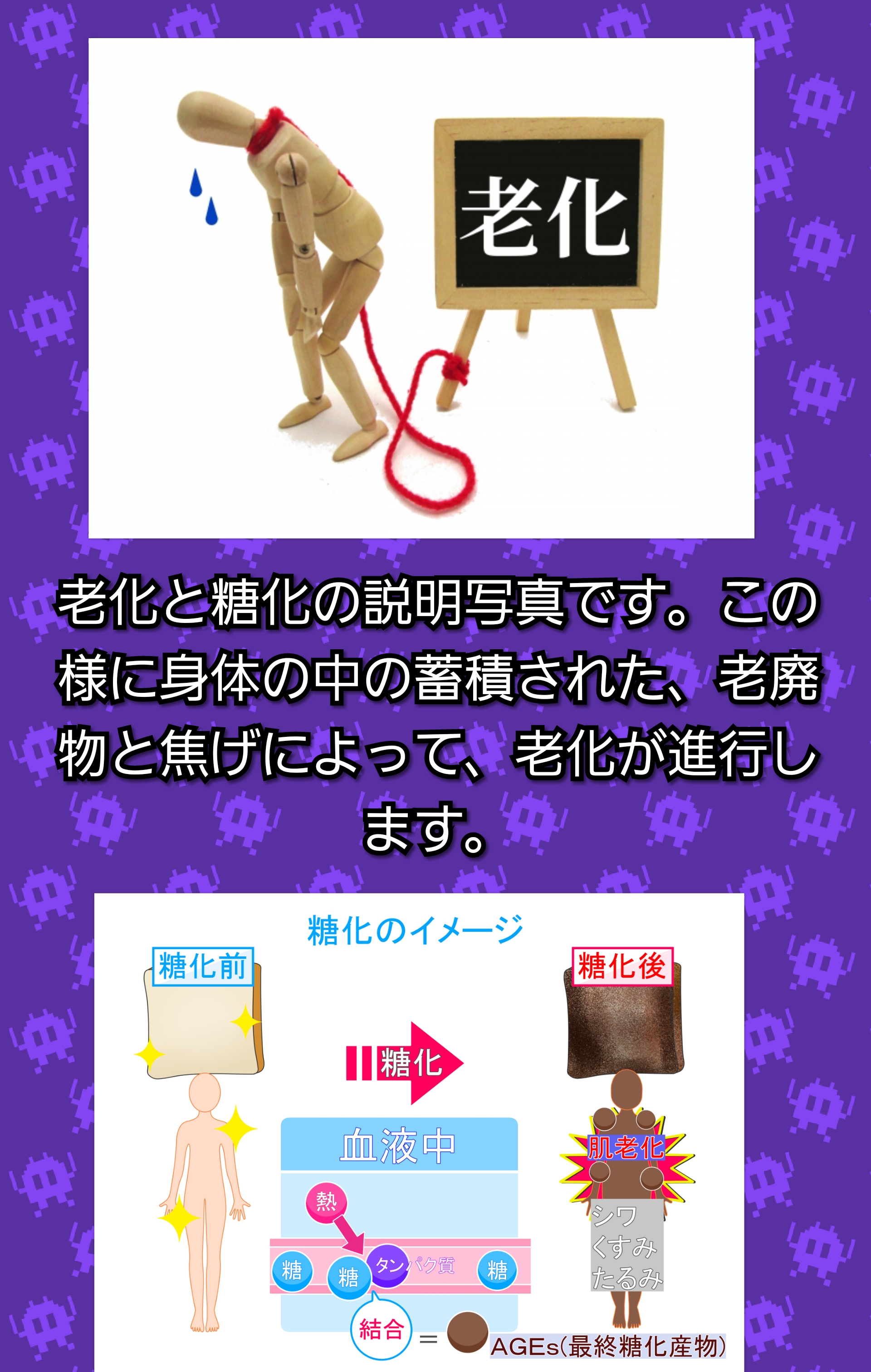 ここまで本文で、老化と糖化の事をお伝えして来ました。