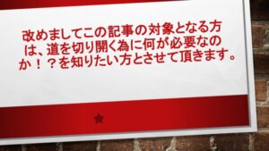 一つのきっかけこそ道を切り開く鍵である事についてのまとめ。