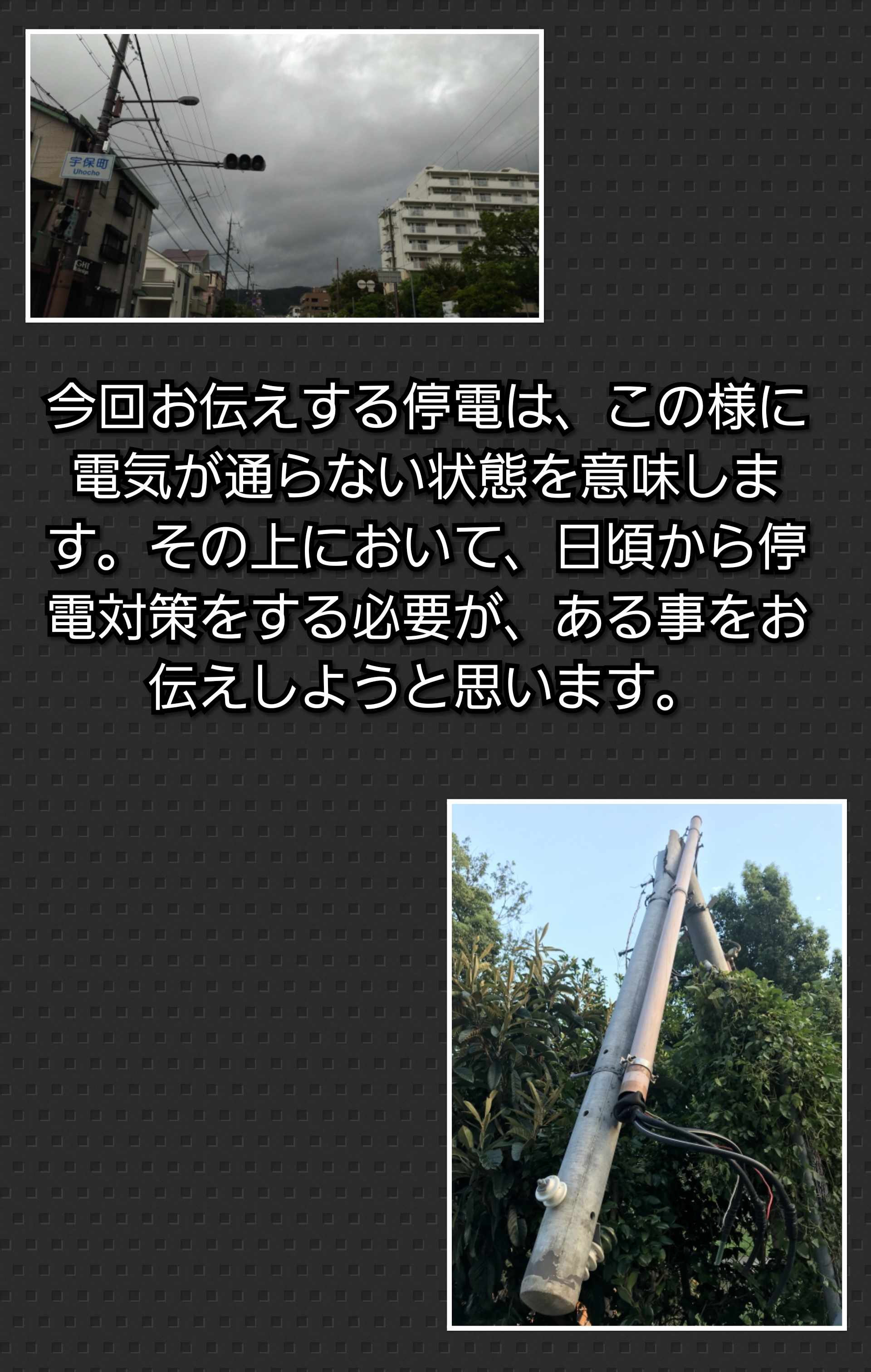 ここまで本文で、停電とその停電が起きる前の対策とその準備の必要がある事をお伝えして参りました。