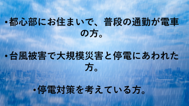 2019年9月に起きた台風による千葉県の大規模災害による停電が、きっかけでこの記事を書く事にしました。