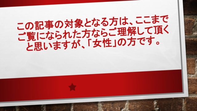 だからこの記事も正直そぅ言った女性の方に、対して不快な記事になる可能性が、出て来ます。