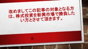 その新興市場での株式投資が、リスクを犯しても勝負すべきです!の理由をこの記事で、お伝えする事を理由に、作成する事にしました。