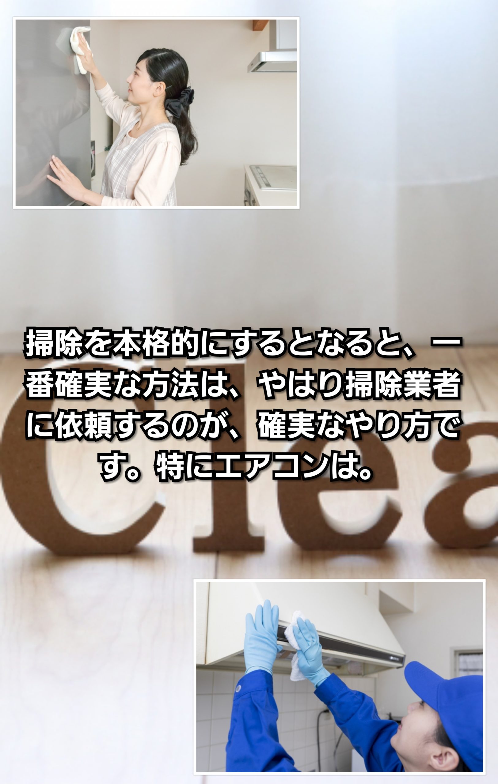 ここまで本文で、本格的な掃除をするならハウスクリーニング業者に依頼すべきである事をお伝えして参りました。