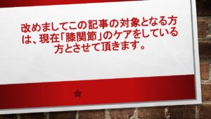 その中でこの記事では、膝関節の可動による動きのケアの必要性をお伝えしようと、作成する事に、しました。