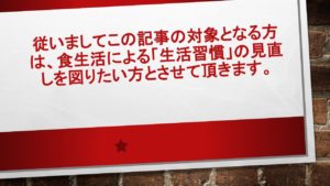 ここまで本文で、誤った食生活から生活習慣の見直しの徹底化を図るべきである事をお伝えして参りました。