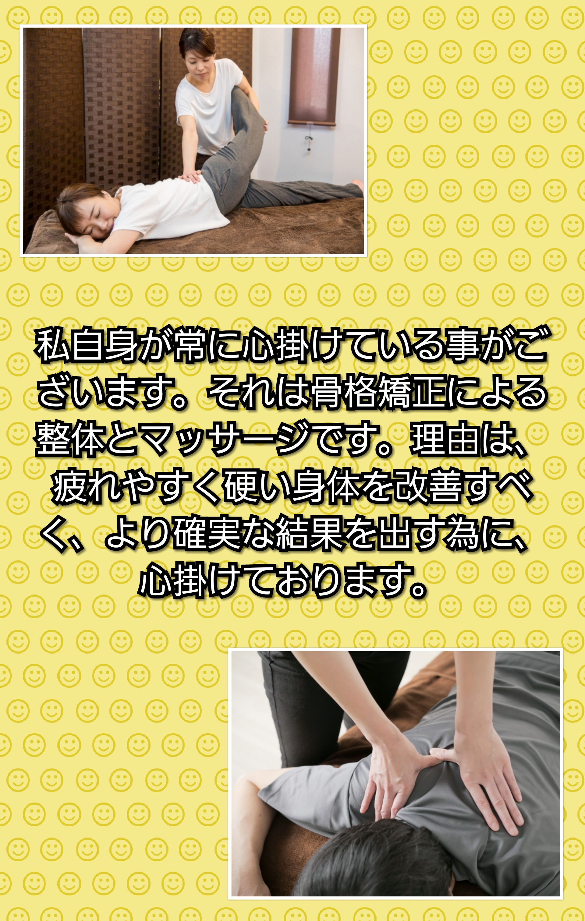 大切なのは整体を繰り返して行く事もそぅですが、その過程においていかに健康的な身体に改善して行くかです。