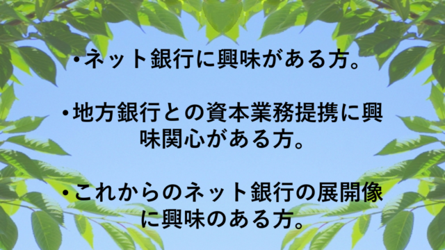 今回のSBIホールディングスの資本によって、地方銀行との業務提携による事業こそ今後のネット銀行の姿となります。