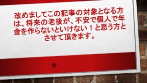 将来の事を考えたら自分個人で年金の作り方を学ばないと駄目だ!