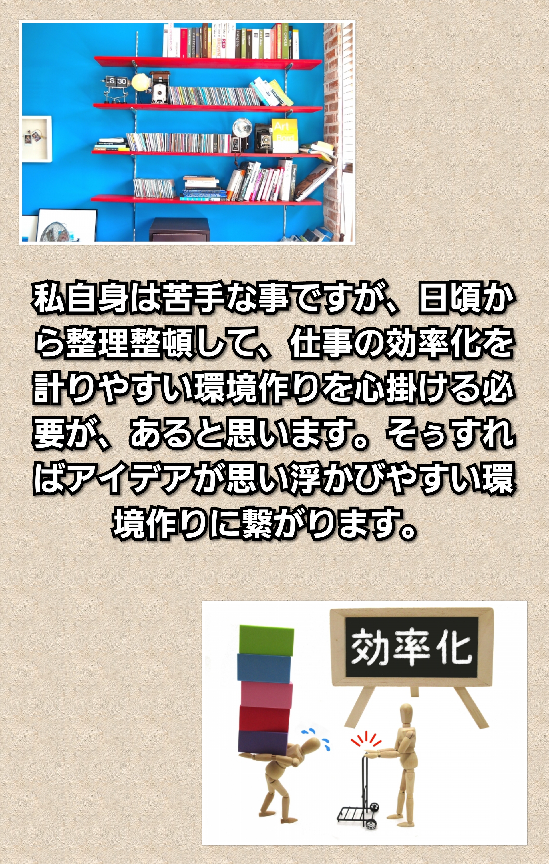 整理整頓をする事で、より効果的な環境を整える。