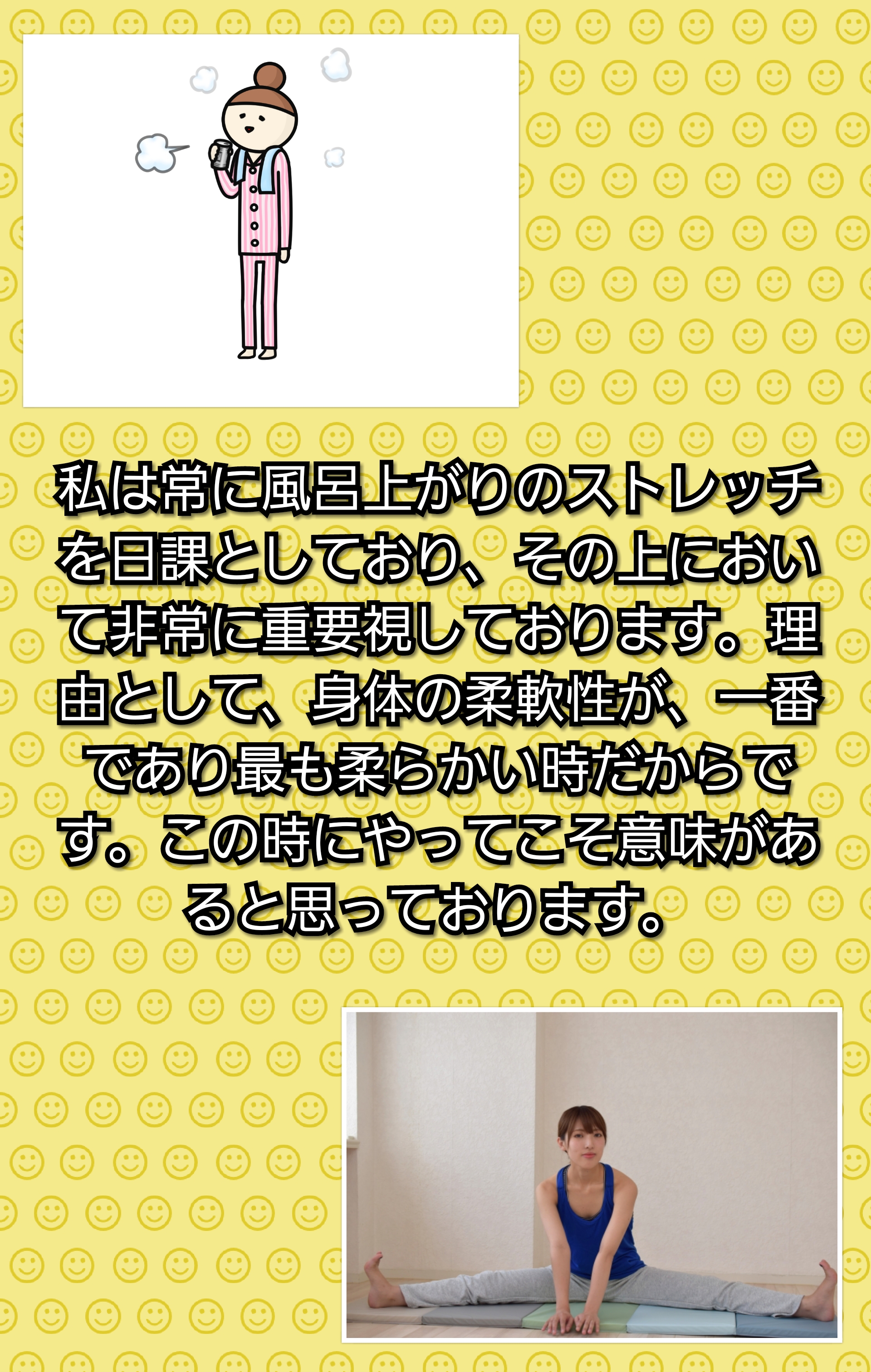 以上の理由で私は日々の風呂上がりのストレッチを行っております。