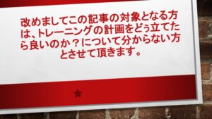 まず第一に私を含めトレーニングとその体の使い方を全く知らない初心者だからです。