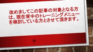 ここまで本文で、ウェートトレーニングをやるにあたって背中のトレーニングメニューを基本とすべきである事をお伝えして参りました。